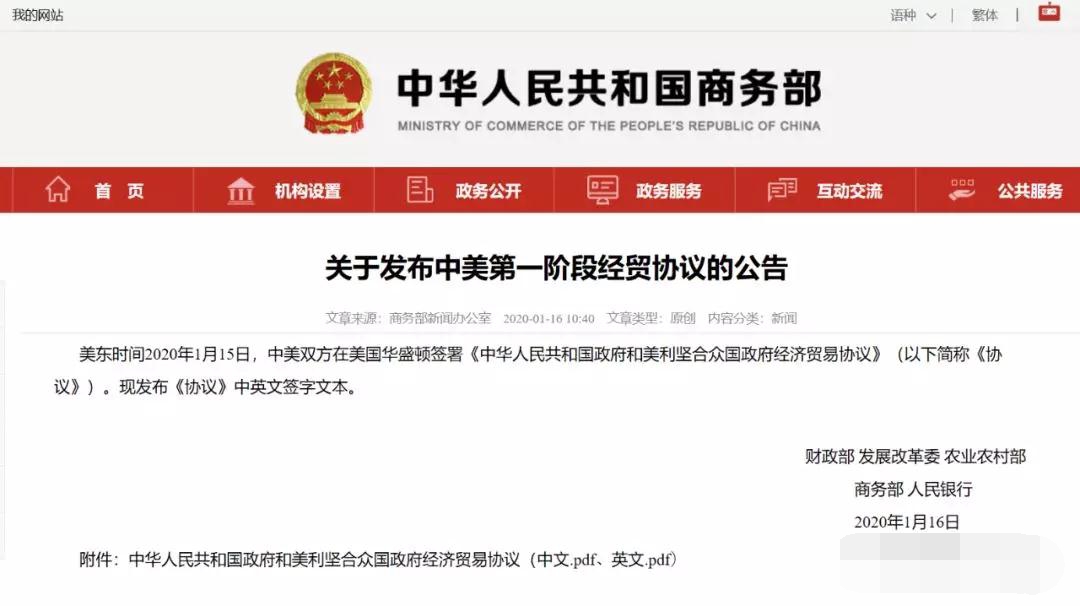 中华人民共和国政府与美利坚合众国政府(以下合称“双方”),认识到双边经贸关系的重要性;认识到贸易增长和遵循国际规范、以促进基于市场的成果,符合两国的利益;深信和谐发展、扩大全球贸易和促进更广泛国际合作可带来的益处;承认双方提出的现有贸易和投资关切;认识到以尽可能建设性的、快速的方式解决现有和未来贸易与投资关切是可取的,达成以下协议: