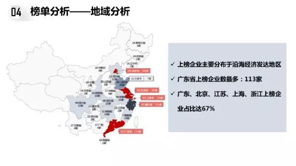 江苏装备制造业:江苏苏博特新材料股份有限公司、苏州佳世达电通有限公司、江苏和成显示科技有限公司、昆山国显光电有限公司、苏州宝时得电动工具有限公司、昆山龙腾光电有限公司、中材科技股份有限公司、天合光能股份有限公司、江苏长电科技股份有限公司、常熟开关制造有限公司、徐州工程机械集团有限公司、江苏中利集团股份有限公司、江苏亨通光导新材料有限公司、南京钢铁联合有限公司、南京康尼机电股份有限公司、中天宽带技术有限公司、双良集团有限公司、无锡透平叶片有限公司、无锡同春新能源科技有限公司、江苏高博智融科技有限公司、江苏新美星包装机械股份有限公司、江苏永钢集团有限公司等单位入榜。