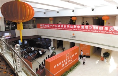 9月23日,设在北京梅地亚中心的庆祝新中国成立70周年活动新闻中心正式启动对外接待服务。
