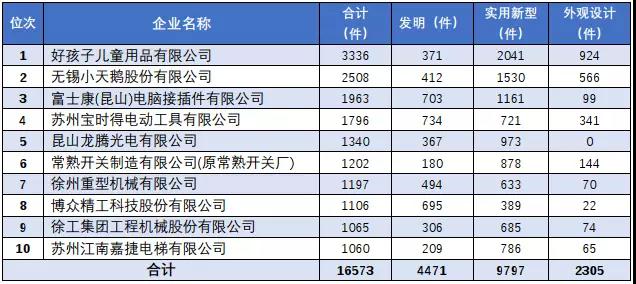 江苏省有效专利量前十企业