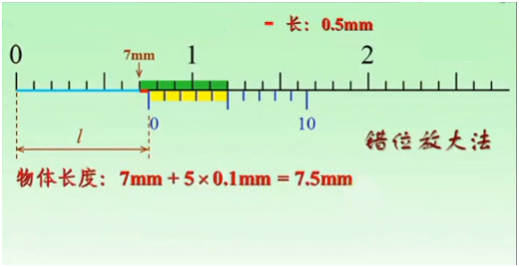 然后主尺量度加上游标量度就是所测物量度。即为7毫米+0.5毫米=7.5毫米。