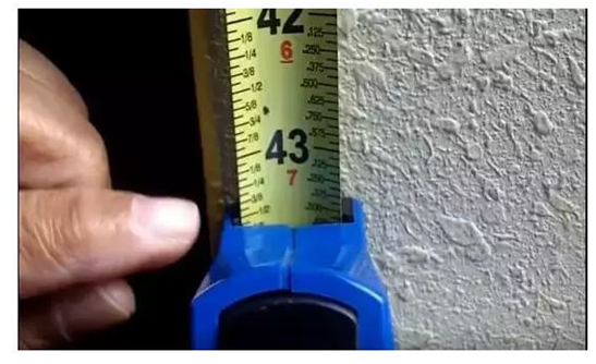 你需要将卷尺放置在同一平面,卷尺的外壳卡在最下方,然后读出卷尺上的长度,再加上卷尺本身的65mm的长度,你就得出了这段距离的准确长度。