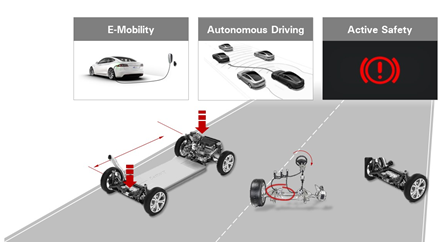 此外,在固有的思维里,转向或许只是前轮的事情,但在未来,提升转向性能和安全还有一个利器——后轮转向。通过将后轮转向与前轮相反的方向,可以减小车辆转弯半径,显著提高在狭小空间中的灵活性。而前后轮同向,则可以提高车辆高速稳定性。