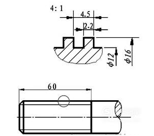 非标准螺纹,则应画出螺纹的牙型,并注出所需要的尺寸及有关要求,如图10.1.4-4所示。方牙螺纹没有国家标准,也没有螺纹的特征代号,故没有螺纹的标记,只有按结构,使用局部放大图表示,并标注出螺纹的螺距是4.5。