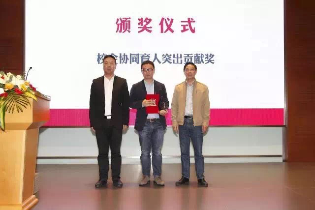 为了表彰泉峰集团在校企协同育人方面的突出贡献,南京市江宁区副区长米永强和 副秘书长饶华球为泉峰集团副总裁、泉峰(中国)工具销售有限公司总经理严晓峰颁发了校企协同育人突出贡献奖。
