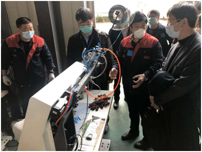 苏州信能精密机械有限公司技术人员争分夺秒,历时10天研发出医用防护服紧缺设备压条机,于2月23号交付客户生产,2月24日国务院应对新型冠状病毒肺炎联防联控机制驻苏州督导组组长徐春荣司长来苏州信能调研指导工作。