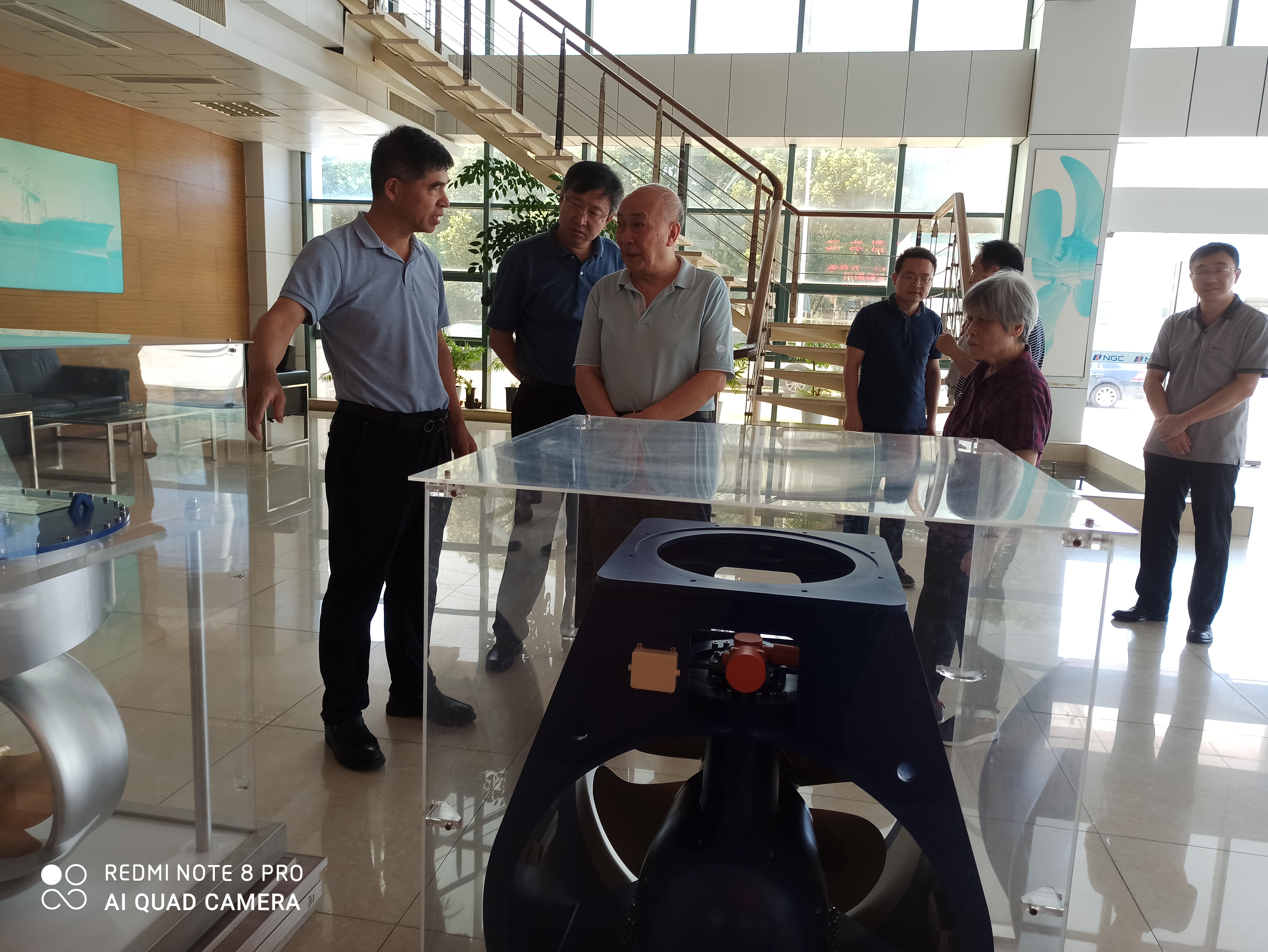 李德群院士在以研发生产成套船用传动和推进设备的南京高精船用设备有限公司,饶有兴趣地一边参观样品一边听取介绍,并向总经理陈永道仔细询问了公司发展、核心产品、技术研发等情况。