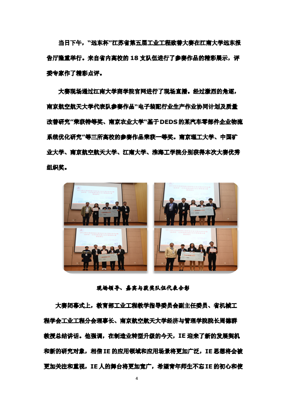工业工程分会举办年会暨“远东杯”江苏省第五届工业工程致善大赛