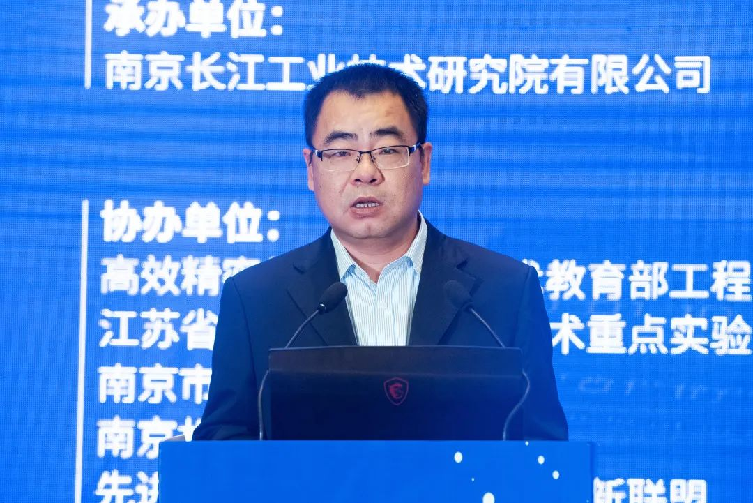 李政代表江苏省科学技术协会致辞,指出当下不同学科的交叉融合越来越多,要重点组建如数字经济协会、人工智能协会、智能制造联合体等的交叉学科协会,应对科技创新协同、技术迭代不断的新挑战。省科协将利用自身平台积极支持智能制造和机器人产业的发展。