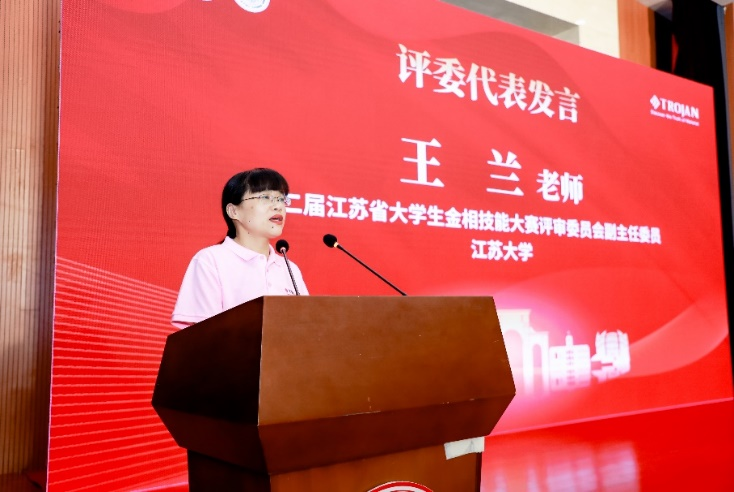 大赛评审委员会副主任委员、江苏大学王兰代表大赛评审委员会向全体师生宣誓,认真履行评审职责,确保公开、公正、公平、严格、规范,保障大赛顺利进行。同时对参赛选手寄予厚望,祝愿参赛选手在比赛中取得优异成绩。
