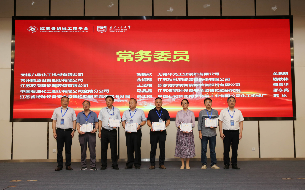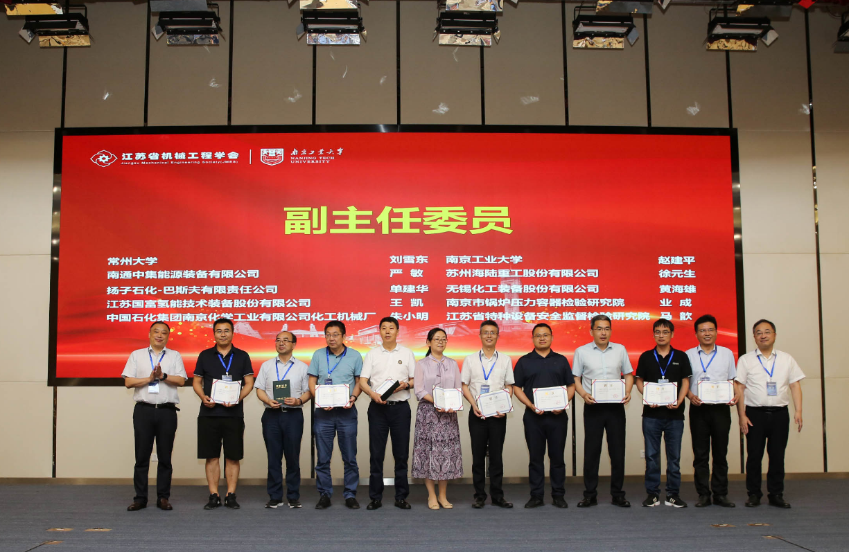 8月19日,由中国机械工程学会、江苏省科学技术协会指导, 压力容器分会承办, 、南京工业大学联合主办的“低碳高效智能化承压设备技术研讨会暨压力容器分会换届选举大会”在宁隆重召开。 副理事长朱平、史金飞,秘书长徐爱民,南京工业大学副校长凌祥,分会成员单位和个人会员出席会议。