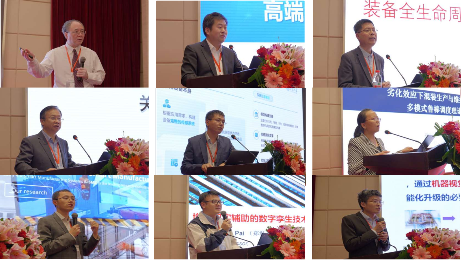 清华大学李京山教授,北京理工大学刘检华教授,西安交通大学张超副研究员代表周光辉教授团队,南京航空航天大学郭宇教授,上海理工大学李卫东教授,山东大学胡天亮教授,新西兰奥克兰大学陆玉前副教授,武汉科技大学唐秋华教授,香港理工大学助理教授郑湃,东华大学汪俊亮副研究员先后以“智慧互联与可持续发展制造系统的机遇和挑战”、“高端装备精密装配技术”、“认知数字孪生驱动的车间智能制造技术及应用”、“复杂离散制造系统数字孪生关键技术研究”、“装备全生命周期智能监控系统研究”、“数字孪生机床-从概念到实践”、“自组织制造网络理论及实践”、“劣化效应下混装生产与维护同步作业的多模式鲁棒调度理论与方法”、“增强现实辅助的数字孪生技术在人本智造领域的探索”、“数据与机理融合的可信视觉检测方法”为题作了精彩的报告交流。