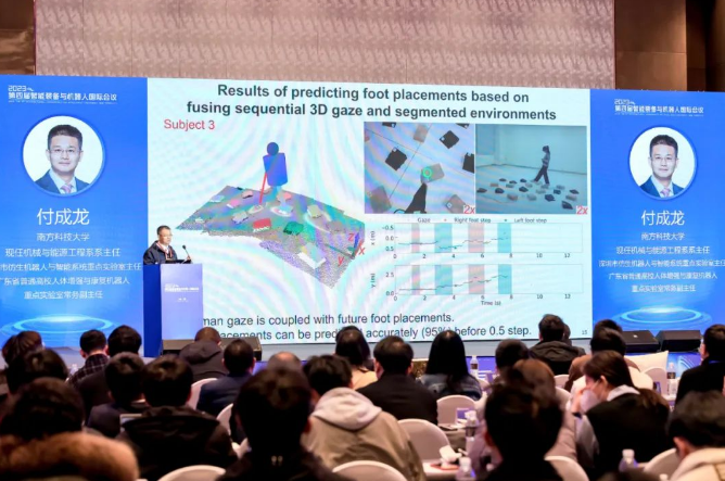 南方科技大学的付成龙教授以《人体增强机器人的“人-机-环”自然交互与协调控制》为题,以大腿假肢机器人、半人马机器人与外肢体机器人为例展示了人体增强机器人的各种应用场景,通过人-机-环物理交互实现协调控制。
