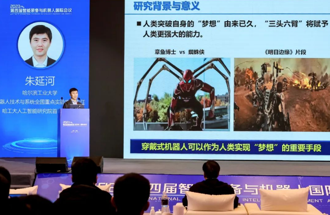 哈尔滨工业大学朱延河教授的报告主题为《可穿戴辅助增强机器人关键技术》,从背景、关键技术与未来展望三方面进行阐述,重点介绍团队提出的多机械臂串并变构构型,实现了本体系统功能的全面突破。