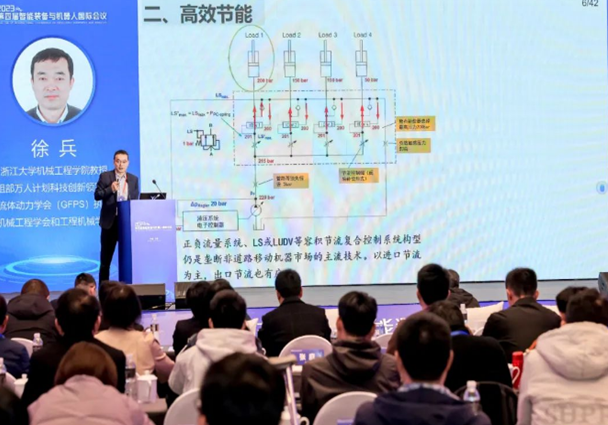 浙江大学徐兵教授以《大型重在机械臂的液压传动与控制关键技术》为题作,指出减排政策下施工作业对装备有着节能的需求,精准操作、机器安全是信息化与智能化作业的重要内容。