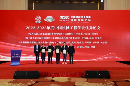 大会上,朱荻、张鹏飞、吴强、张仁洪分别为2023年度特种加工分会“最美科技工作者”和2022-2023年度中国机械工程学会“优秀论文”颁奖。