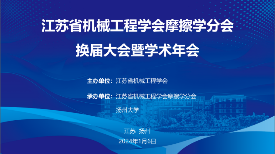 2024年1月6日上午, 摩擦学分会换届大会暨学术年会在江苏扬州举行。 秘书长徐爱民、副秘书长刘旗耀、摩擦学分会上一届主任委员、副主任委员、秘书长和新一届候选委员以及相关单位代表50余人出席了大会。