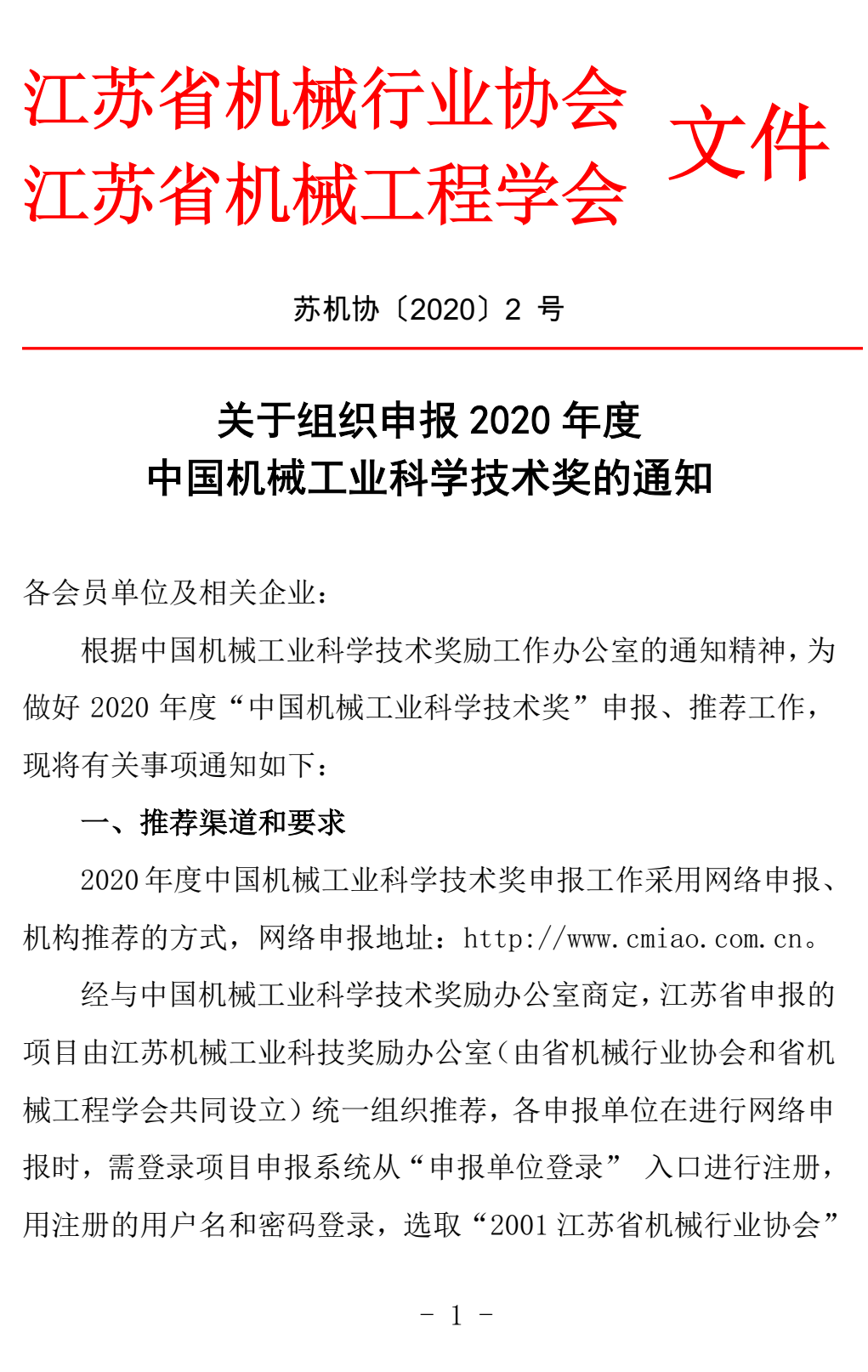 上一篇:关于2019年度江苏省机械工程科技奖项通报