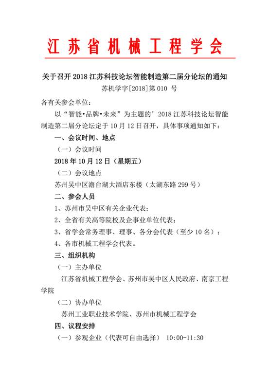 关于召开 2018 江苏科技论坛智能制造第二届分论坛的通知