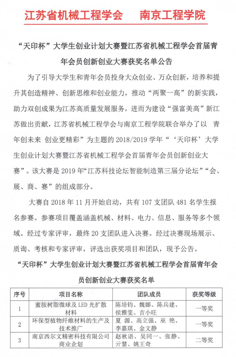 “天印杯”大学生创业计划大赛暨 首届青年会员创新创业大赛获奖名单公告
