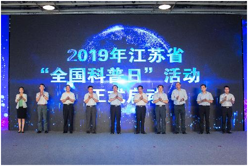 由省委宣传部、省教育厅、省科技厅、省农业农村厅、省卫生健康委、省科协、中科院南京分院等单位共同举办、以“礼赞共和国、智慧新生活”为主题的2019年“全国科普日”江苏省主场活动9月7日在南京国际展览中心举行。中科院院士、省科协主席陈骏,省人大教科文卫委副主任张亮,省政协科技委副主任顾汉德,省委宣传部副部长、省文明办主任葛莱,省科协党组书记、副主席孙春雷,中科院南京分院党组书记、副院长朱怀诚,省科技厅副厅长夏冰,省农业农村厅副厅长蔡恒,省卫生健康委副主任、省中医管理局局长朱岷,省科协副主席徐春生出席开幕式,共同启动2019年江苏省“全国科普日”活动暨江苏省全民科学素质大赛网络竞赛。