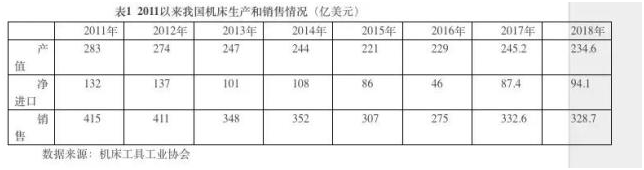 机床工业产值连年递减,市场萎缩。2018年,全行业产值比2011年下降17%,销售额下降21%。